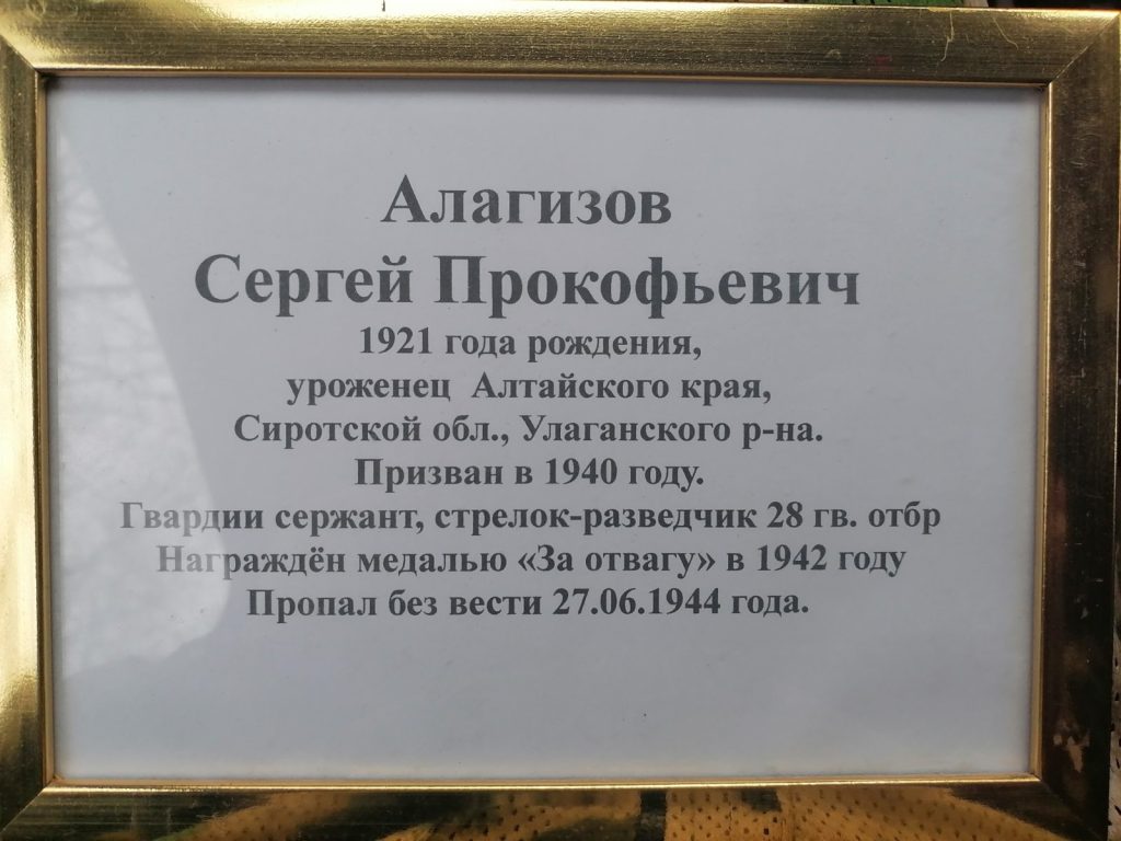 Сегодня в деревне Рудаки Витебского района наш клуб «Поиск» торжественно захоронили останки 4 воинов Красной Армии. По найденный медали «За отвагу» установлена фамилия — Азагизов Сергей Прокофьевич из Алтая.