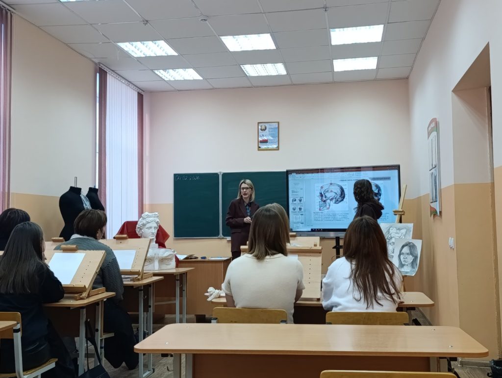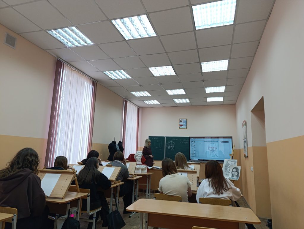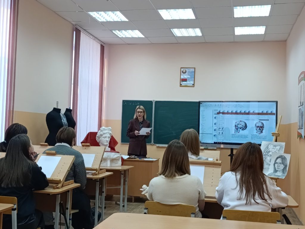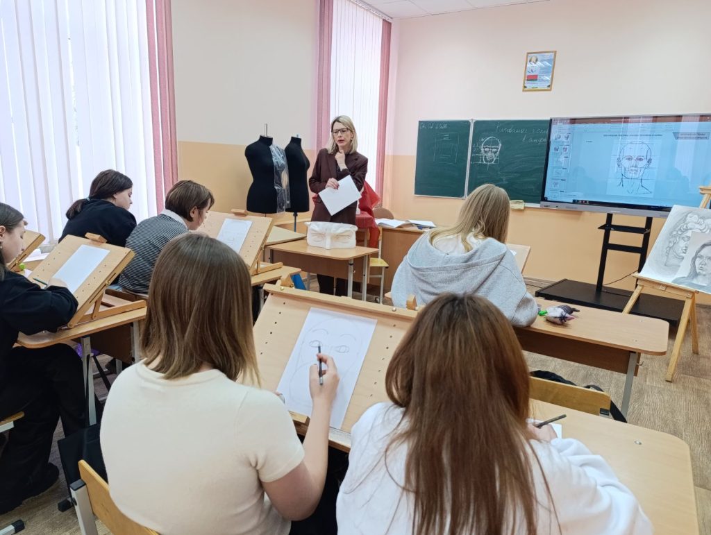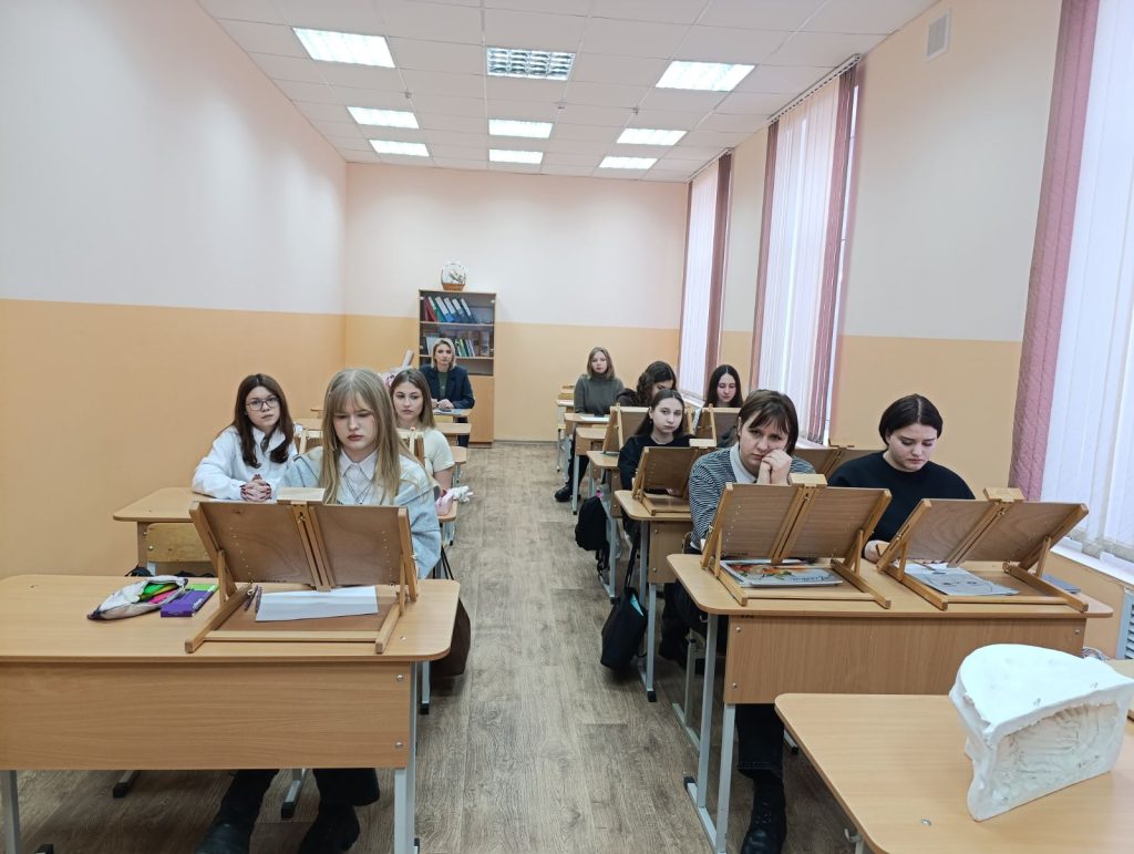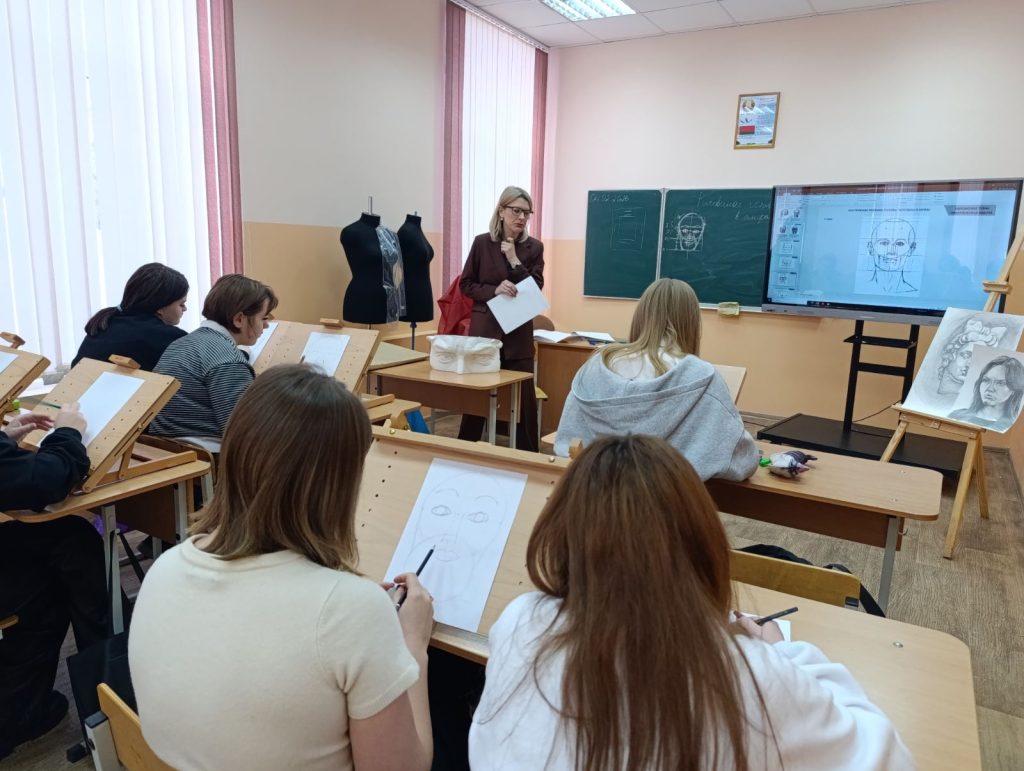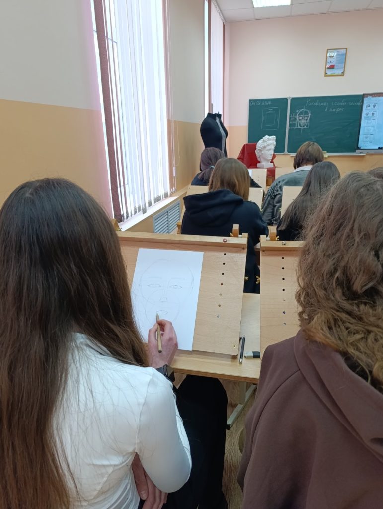 В рамках предметно-профессиональной недели 04.02.2026 г. прошло открытое учебное занятие по учебному предмету «Специальное рисование с основами пластической анатомии» в 101с группе по теме «Выполнение зарисовок головы человека в положении анфас по модульно-пропорциональной схеме 5/7 с лёгкой проработкой теней». Преподаватель: Костина Анна Юрьевна.