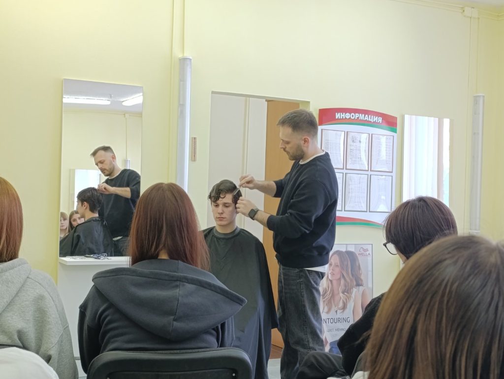 Также в этот день состоялся семинар по парикмахерскому искусству по теме «Особенности современных мужских стрижек» для групп 302б, 303б, 304б. Приглашённый спикер: Альберт Бекоев, выпускник нашего колледжа, профессиональный барбер и основатель сети мужских парикмахерских NO:W в Витебске.