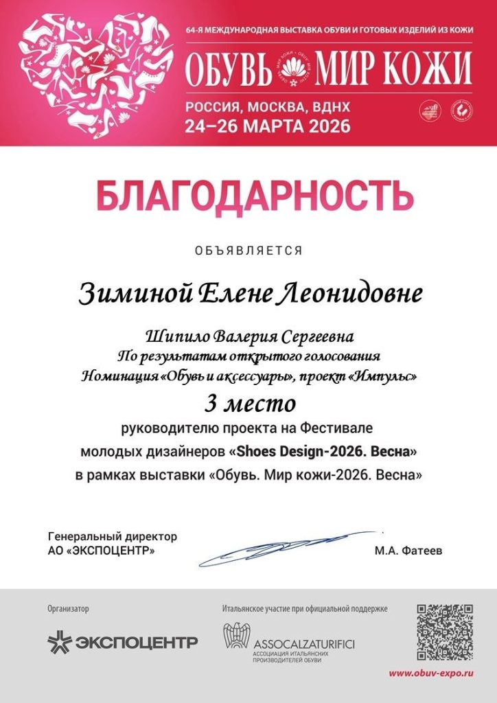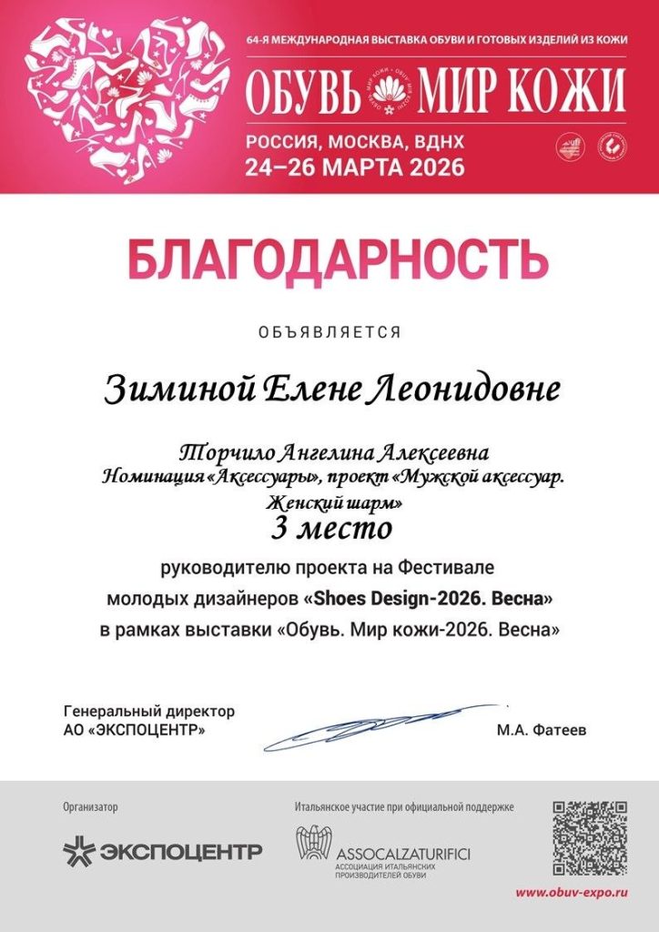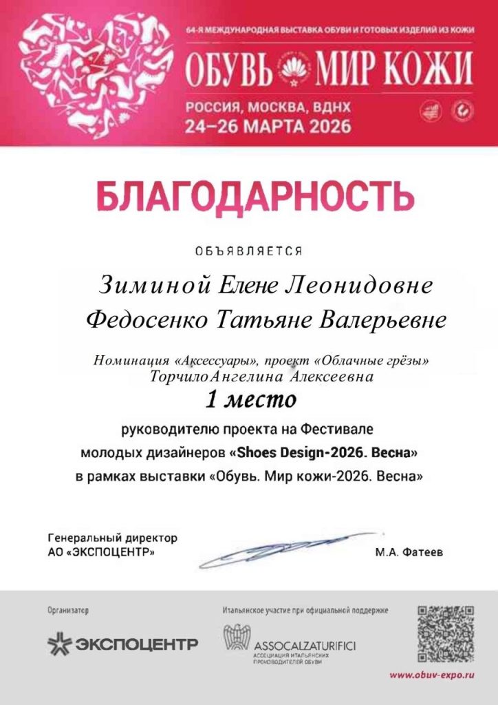 Π‘ ΠΎΠ³ΡΠΎΠΌΠ½ΡΠΌ ΡΠ΄ΠΎΠ²ΠΎΠ»ΡΡΡΠ²ΠΈΠ΅ΠΌ ΠΏΠΎΠ·Π΄ΡΠ°Π²Π»ΡΠ΅ΠΌ Π½Π°ΡΠΈΡ ΡΡΠ°ΡΠΈΡ ΡΡ ΠΈ ΠΈΡ ΡΡΠΊΠΎΠ²ΠΎΠ΄ΠΈΡΠ΅Π»Π΅ΠΉ Π·Π°Π²Π΅Π΄ΡΡΡΠ΅Π³ΠΎ ΡΠ΅Π½ΡΡΠ° ΠΊΠΎΠΌΠΏΠ΅ΡΠ΅Π½ΡΠΈΠΉ, ΠΊΠ°Π½Π΄ΠΈΠ΄Π°ΡΠ° ΡΠ΅Ρ Π½ΠΈΡΠ΅ΡΠΊΠΈΡ Π½Π°ΡΠΊ, Π΄ΠΎΡΠ΅Π½ΡΠ° ΠΠΈΠΌΠΈΠ½Ρ ΠΠ»Π΅Π½Ρ ΠΠ΅ΠΎΠ½ΠΈΠ΄ΠΎΠ²Π½Ρ ΠΈ ΠΌΠ°ΡΡΠ΅ΡΠ° ΠΏΡΠΎΠΈΠ·Π²ΠΎΠ΄ΡΡΠ²Π΅Π½Π½ΠΎΠ³ΠΎ ΠΎΠ±ΡΡΠ΅Π½ΠΈΡ Π€Π΅Π΄ΠΎΡΠ΅Π½ΠΊΠΎ Π’Π°ΡΡΡΠ½Ρ ΠΠ°Π»Π΅ΡΡΠ΅Π²Π½Ρ Ρ ΡΡΠΏΠ΅ΡΠ½ΡΠΌ ΡΡΠ°ΡΡΠΈΠ΅ΠΌ Π² 64-ΠΉ ΠΠ΅ΠΆΠ΄ΡΠ½Π°ΡΠΎΠ΄Π½ΠΎΠΉ Π²ΡΡΡΠ°Π²ΠΊΠ΅ ΠΎΠ±ΡΠ²ΠΈ ΠΈ Π³ΠΎΡΠΎΠ²ΡΡ ΠΈΠ·Π΄Π΅Π»ΠΈΠΉ ΠΈΠ· ΠΊΠΎΠΆΠΈ!